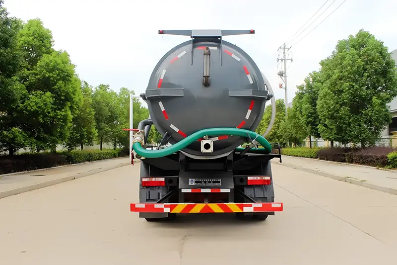③Bovendien is de rioolzuigwagen gestandaardiseerd met een hydraulisch hefsysteem, een rioolcirculatiesysteem en een meerpuntsveiligheidssysteem. Het hydraulische hefsysteem kan de tank eenvoudig kantelen om materialen af te voeren, wat handig en arbeidsbesparend is; het rioolcirculatiesysteem kan zelfreiniging van de tank realiseren, waardoor de onderhoudswerklast wordt verminderd; Het veiligheidsbeschermingssysteem omvat een noodstopknop, een overdrukventiel en andere componenten, waardoor de veiligheid van operators en apparatuur tijdens het gebruik wordt gewaarborgd.